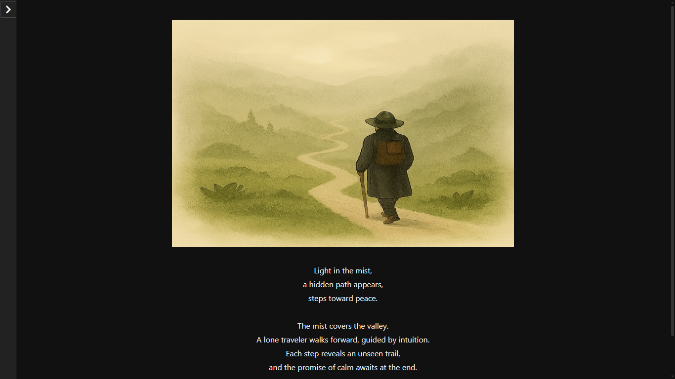 | Tags | aventura-contemplativa, bilingue, ficcion-lirica, haiku, minimalista, narrativa-ambiental, poesia-interactiva, Retro, Twine, viaje1 |